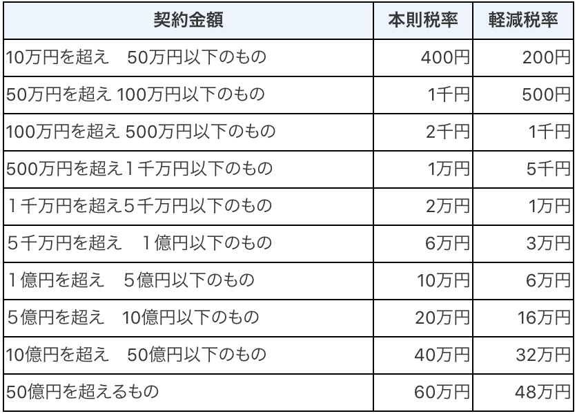 印紙税は取引金額によって金額が変わります。