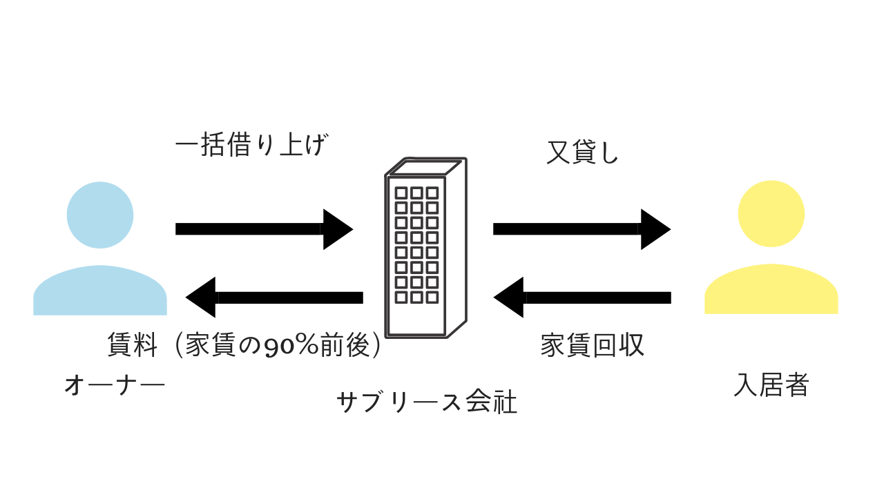 サブリース契約とはサブリース会社が物件を借りて、その物件また入居者に貸すという、転借の契約になっています。