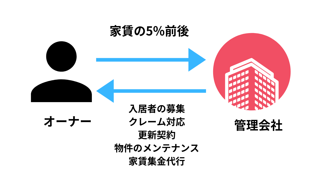自主管理のところでも少しお話しましたが、管理会社に家賃の5%前後を支払うことによって管理を任せることができます。