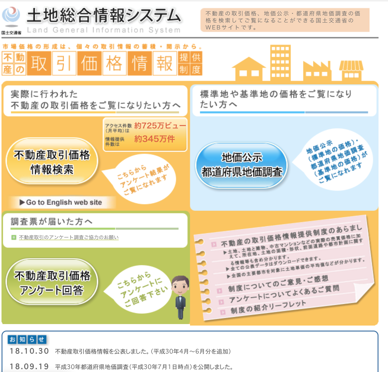 国土交通省の「土地総合情報システム」を利用して、あなたの物件の土地がいくらなのか確認しましょう。